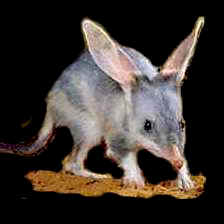 The Bilby is nocturnal and lives in deep spiral burrows by day, venturing out at night to dig for seeds, bulbs, fruit , fungi and some insects. It is one of Australia's quaintest creatures. Unfortunately the Bilby has now joined most of Australia's wildlife on the very edge of extinction itself.  Presently over half the world's endangered mammals are Australian.